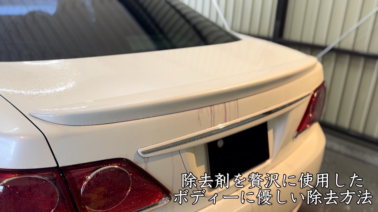 ボディーに付着したタールやピッチなどの油汚れを、水洗いだけで完全に除去することは不可能です。
